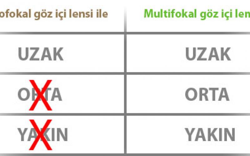 Ameliyatınızda bu lens kullanılırsa uzağı, orta mesafeyi ve yakını gözlüksüz olarak net görebilirsiniz.